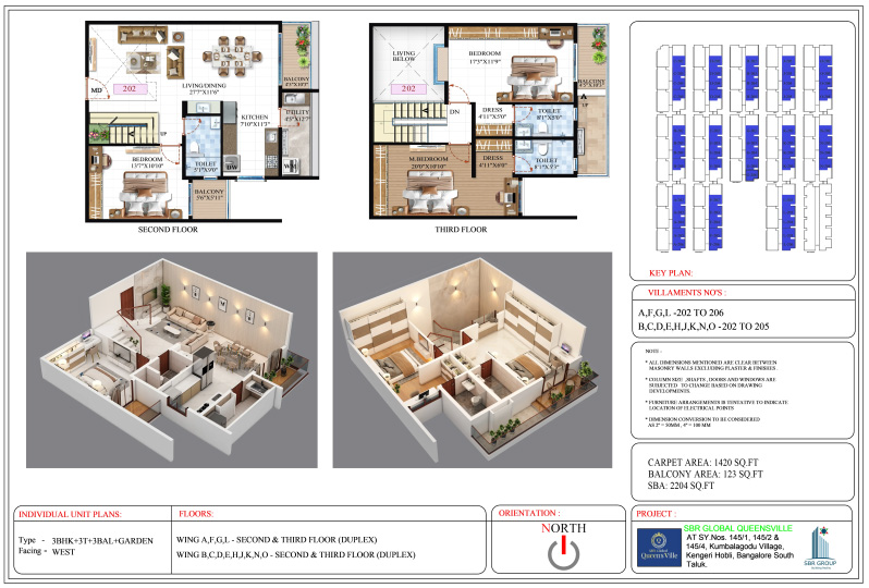 SBR Global Queen’s Ville is an exquisite villament community spread across 8 acres on Mysore Road, near RajaRajeshwari College of Engineering. This elegant enclave offers 441 thoughtfully crafted 3BHK Duplex and Penthouse Villaments, 2BHK and 3BHK Simplex, blending the luxury of independent villa with the ease of apartment living. Surrounded by lush landscapes, each home is designed to provide privacy, picturesque views, and a truly sophisticated lifestyle.